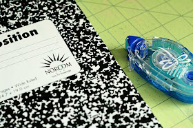 I bought this composition notebook for $.50 the other day while school supply shopping for my sweet son, who is now a kindergartner (I used to love getting a blank marble composition book when I was little-- so many pages to fill up with writing and drawing :)). I wanted to dress it up some and decided to use washi tape - I was inspired by Danni over at Oh Hello Friend and her cute little notebook she created :)